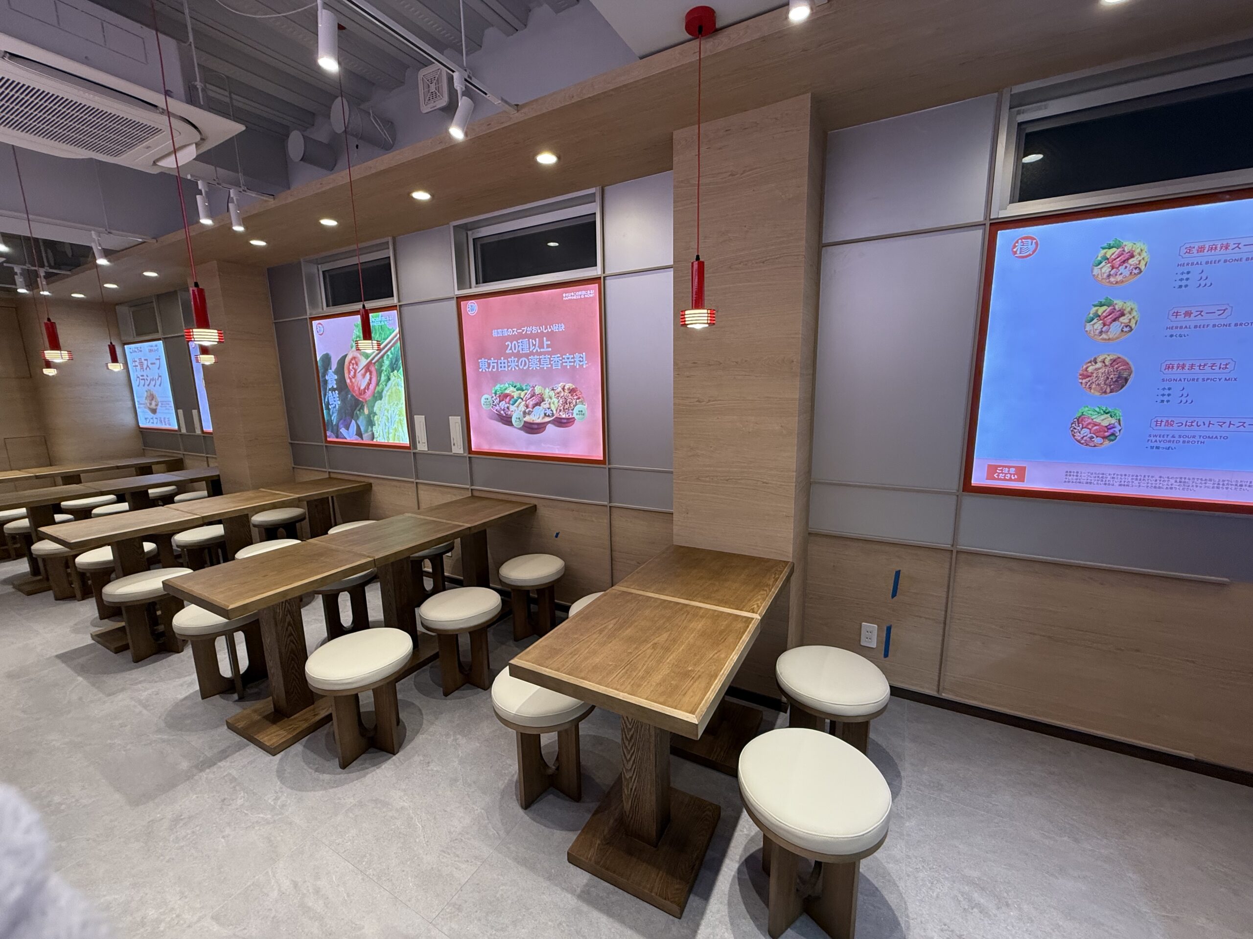 このたび、弊社が手掛けた「楊國福(ヤンゴフ)」マーラータン巣鴨店の工事が無事に竣工いたしました。デザインから施工まで一貫して自社で対応し、ブランドの魅力を最大限に引き出す空間を創り上げております。細部までこだわった設計と丁寧な施工により、訪れるお客様に快適で心地よいひとときをお過ごしいただける店舗となりました。